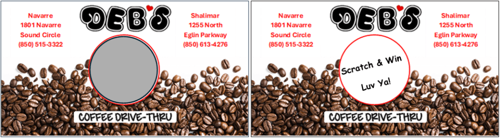 Don’t miss out! Deb’s is randomly giving away free scratch tickets with tons of chances to win. Specific date and times will be revealed on Deb’s Facebook and Instagram pages to be sure to follow us for your chance to win!